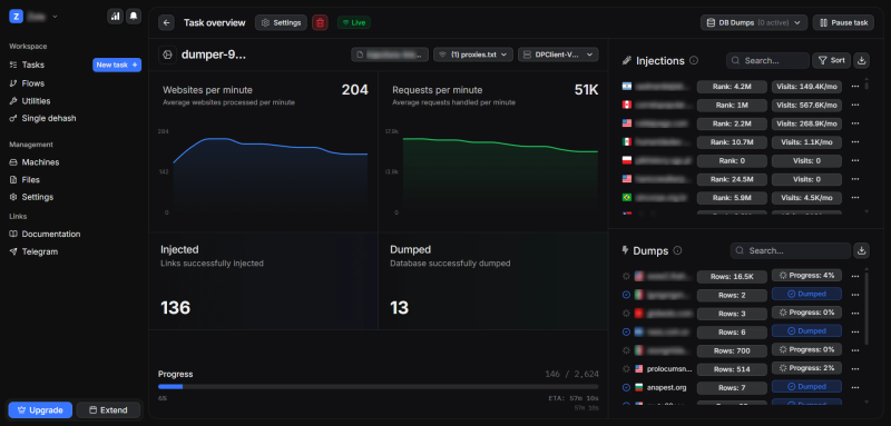 Wenn du die verwundbaren Links beisammen hast, besteht der letzte Schritt darin, die Datenbanken zu dumpen oder zu durchsuchen, um das zu finden, was du brauchst. Unser Dumper bietet über 10 Einstellungen, damit du den Prozess genau an deinen Workflow anpassen kannst.